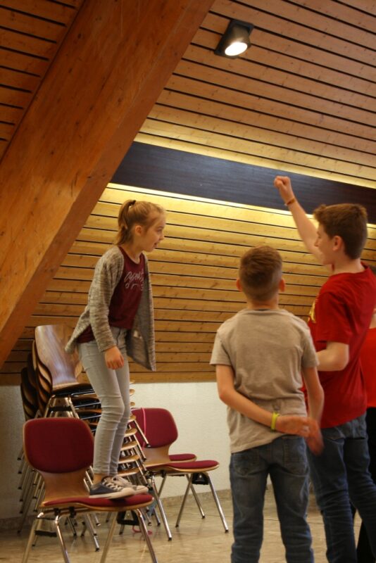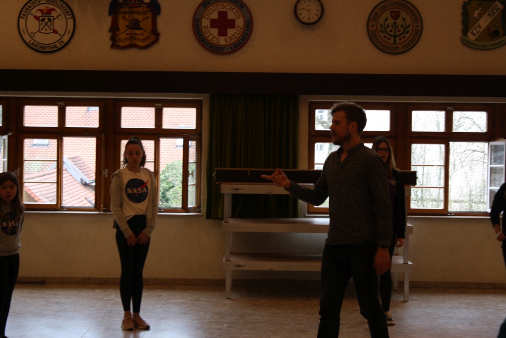 In einem spannenden und sehr abwechslungsreichen Workshop durften am vergangenen Wochenende unsere Nachwuchsspieler zwischen 10 und 15 Jahren eine umfassende Einführung in die Grundlagen der Schauspielkunst erfahren. Theaterpädagoge und Regisseur Rob Dornboos aus Karlsruhe trainierte zwei volle Tage lang zu den Themen Wahrnehmung, Körperspannung, Stimme und Bühnenpräsenz mit den jungen Spielern. Viel Freude hatten die Akteure am eigenständigen Entwerfen kleiner Szenen – und der Schlachtruf „Ha-Su-Ka-Ka“ wird wohl so stark in Erinnerung bleiben, dass damit noch der eine oder andere außenstehende in den kommenden Wochen verwirrt wird.