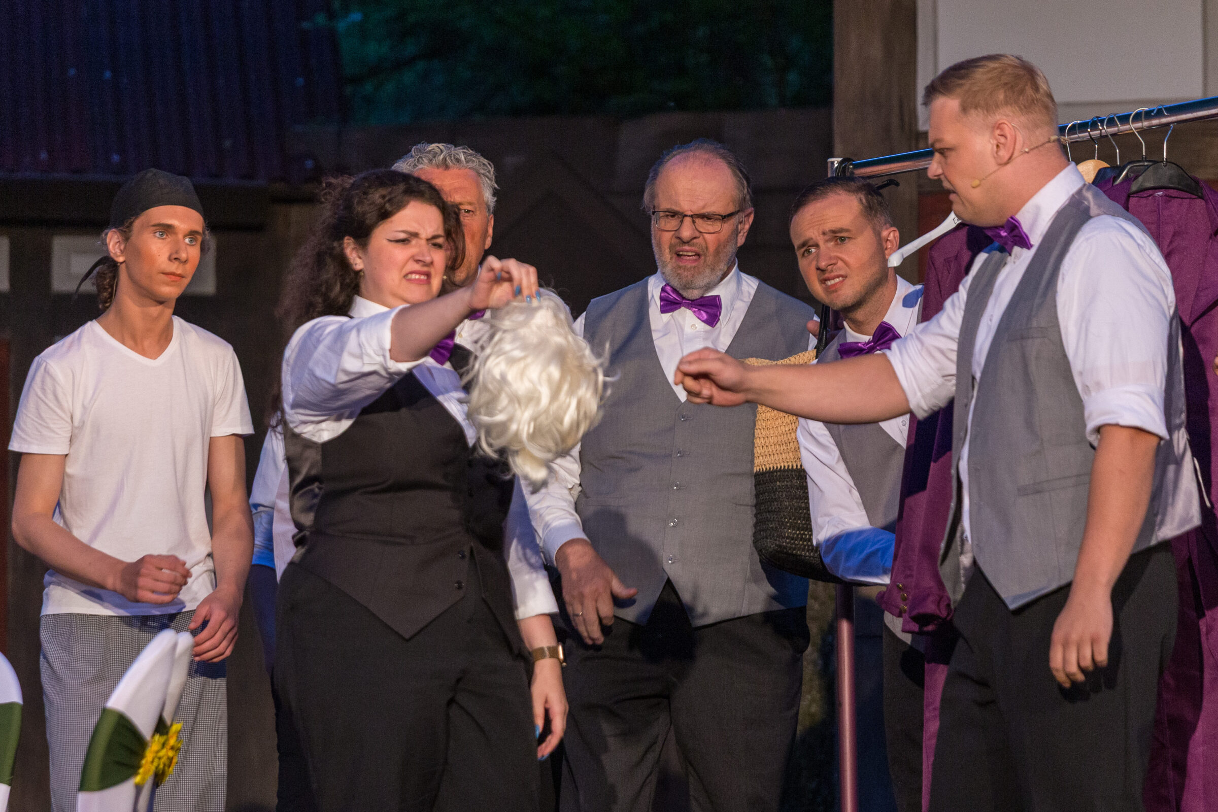 Autor: Stephan Eckel | Grafik: Petra Unterricker | Presse & Marketing: Fabian Felbick, André Kobsik, Alexander Speh, Sarah Stebich| Kostüm: Madeleine Gasser | Requisite: Birgit Wolf-Höhn mit Madleen Haberstroh, Stefan Höhn, Claudia Kreuzkamm-Schnürer, Carolin Lipp, Angela Sauter und Julia Schneider | Maske: Madeleine Gasser mit Silvia Dreher, Sara Hägele, Laura Hirling, Sarah Hohl, Rebecca Kernler, Theresia Kernler, Alinde Krieg, Anzhelika Lyovina, Helena Pfäffle, Noah Schuster, Noel Wohlwender und Ronja Wiedemann | Frisuren: Christiane Hund und Birgit Droxner mit Rebecca Baumbast, Anna Brodmann, Silvia Dreher, Aliena Hund, Annalena Maile, Natalja Müller, Esther Rebholz, Ida Rumpel, Noah Schuster, Sofia Speh und Eva Stebich | Bühnenbild: Irmhild Kaltenbach mit Anja Eisele unterstützt durch Mitspieler*innen | Bühnenbau: Manfred Kaltenbach, Walter Kordovan, Joachim Link, Ingo Ponti, Josef Stehle unterstützt durch Mitspieler*innen | Choreografie: Dominik Hadasch mit Alicia Zimmerer | Fotografie: Stefan Höhn | Film: Claudia Kreutzkamm-Schnürer und Maik Schnürer (www.au-tv.de) | Licht/Ton/Effekte: Johannes Buhlert und Dominik Hadasch mit Simon Blug, Matthias Hahn, Jakob Maichle, Florian Münzer, Felix Rist und Jack Speh | Musik: David Voll mit Sarah Stebich (Produktion), Ahmad Khidhir (Gitarre) und Miriam Holl (Violine)