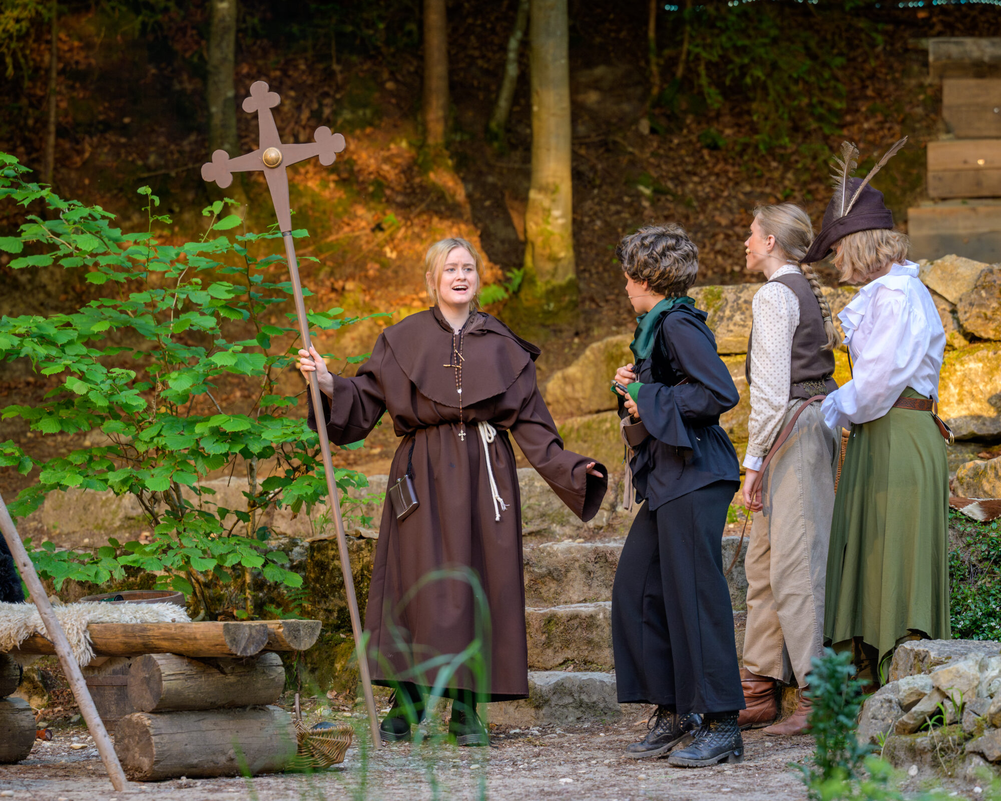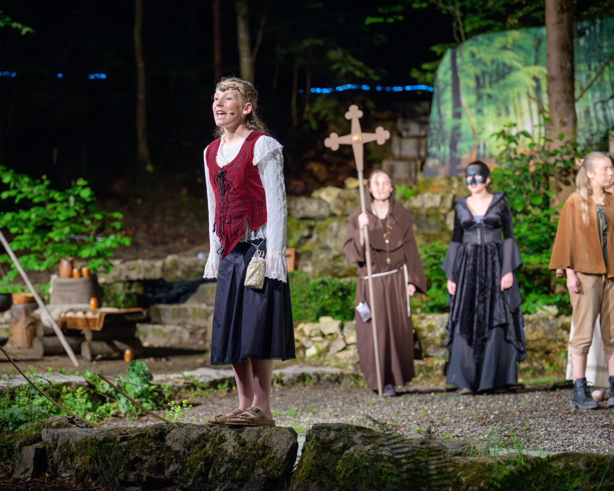 Das Kinder- und Jugendensemble der Waldbühne bringt in diesem Sommer eine kindgerechte Version von Robin Hood auf die Freilichtbühne. Die Fabel um die Figur des Robert von Locksley, der selbst aus wohlhabenden Verhältnissen kommt, sich aber dann mit neuem Namen Respekt beim einfachen Volk verschafft, ist eine immer wieder gern neu interpretierte und zeitlose Geschichte über Arm und Reich.